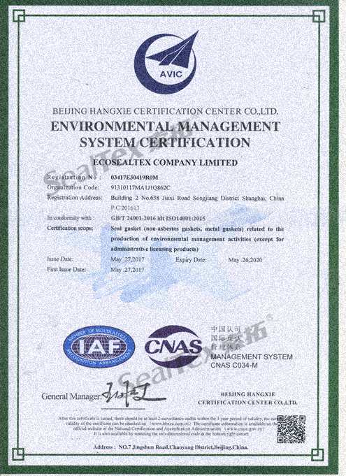 為了更好的推動(dòng)“禁止使用石棉制品”進(jìn)程、推進(jìn)環(huán)保事業(yè)、樹(shù)立企業(yè)形象,我司于2017年通過(guò)了ISO14001環(huán)境管理體系及OHSAS18001職業(yè)健康安全管理體系的認(rèn)證并獲得認(rèn)證證書(shū)。
