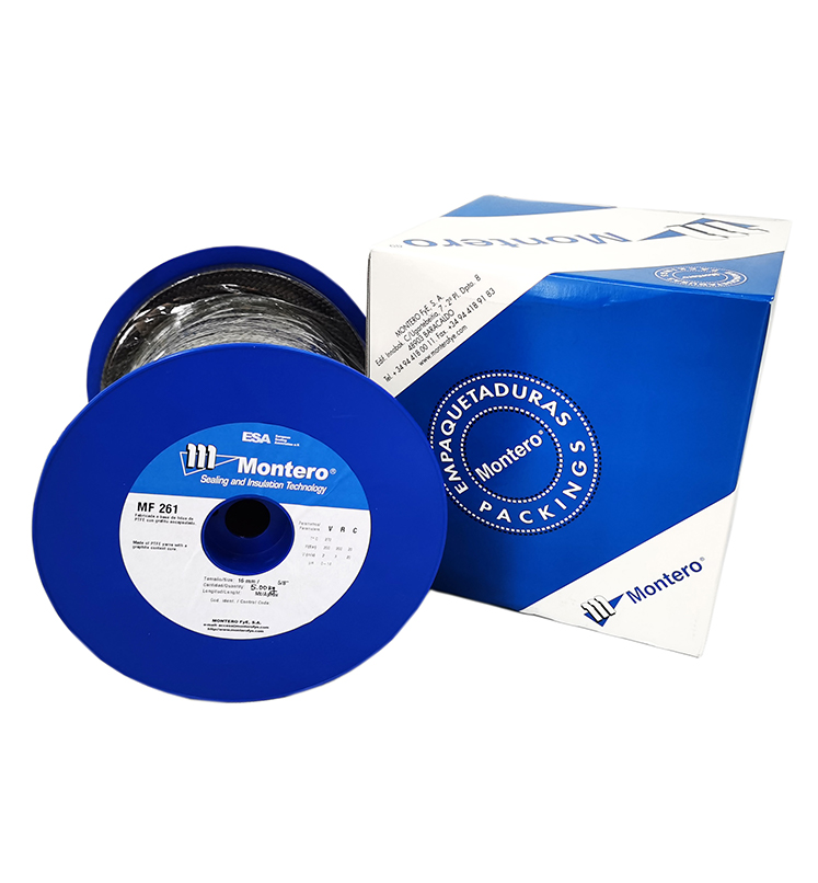 MF-261由含石墨的四氟線經(jīng)對角編織而成。石墨成份使盤根非常柔韌、易安裝及散熱快﹔四氟成份使其極抗化學腐蝕﹐幾乎適用于除強氧化物質(zhì)(如硝酸、硝基鹽酸及強堿)之外的任何介質(zhì)。此盤根不易硬化,且具有自潤滑性能﹐使其被廣泛應用于各種旋轉(zhuǎn)設備的填料函及閥門。