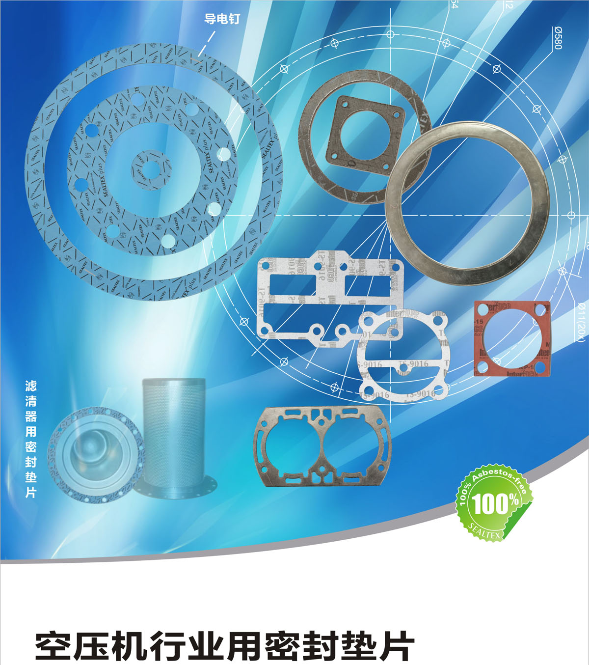可應(yīng)用于活塞機(jī)、螺桿機(jī)等各類壓縮機(jī)中的空氣濾清器、機(jī)頭、閥板、曲軸箱、軸承蓋、進(jìn)排氣口、油漆桶、油路等部分的密封。