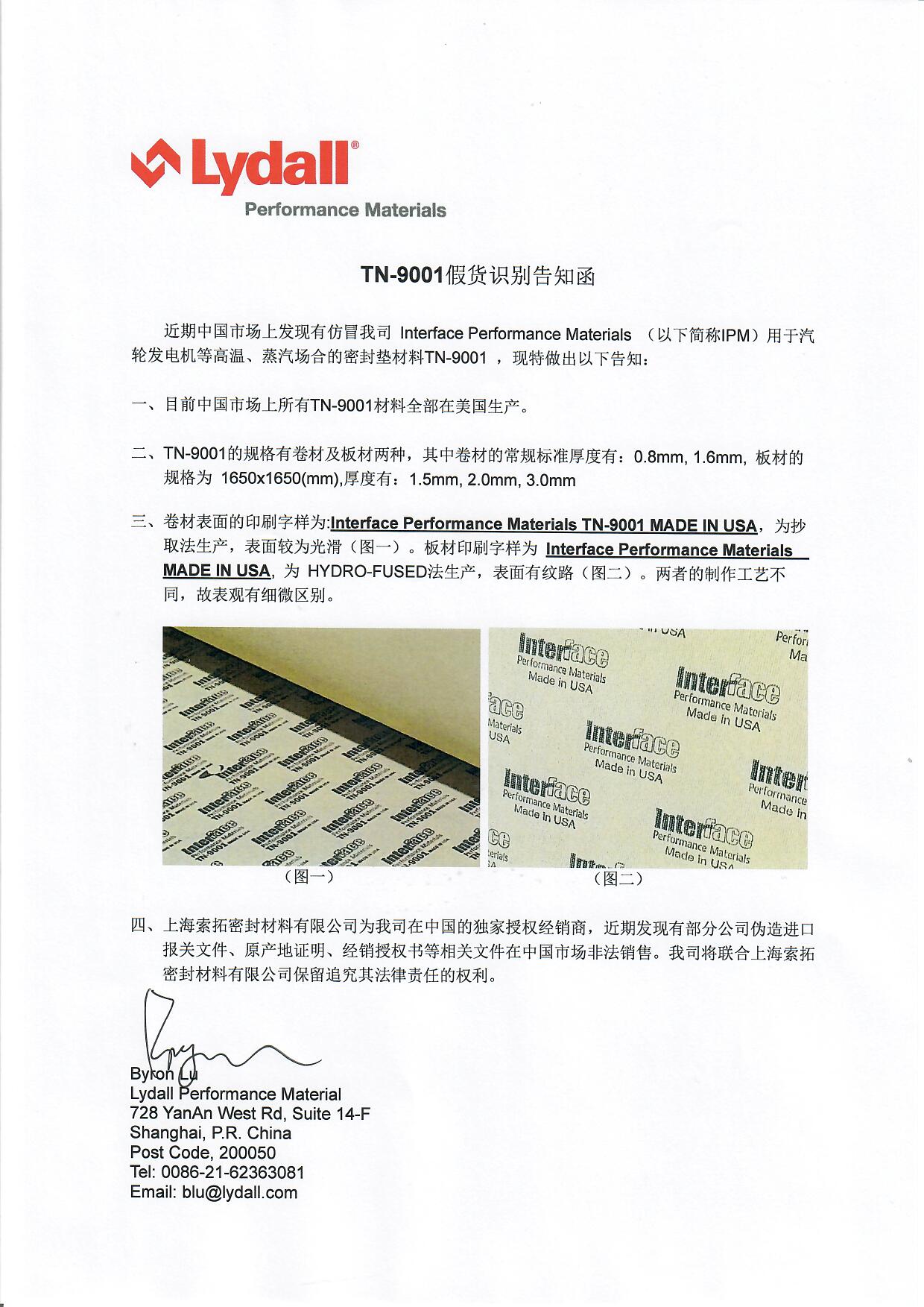 美國因特費(fèi)斯廠家緊急出具TN-9001假貨識(shí)別告知函 近期中國市場上發(fā)現(xiàn)有仿冒InterFace Performance Materials用于汽輪發(fā)電機(jī)等高溫、蒸汽場合的密封材料TN-9001,現(xiàn)特作出以下告知: 在此我們對(duì)長期支持并使用正版美國INTERFACE產(chǎn)品、維護(hù)知識(shí)產(chǎn)權(quán)的用戶表示忠心的感謝! 上一個(gè) 返回列表 下一個(gè)