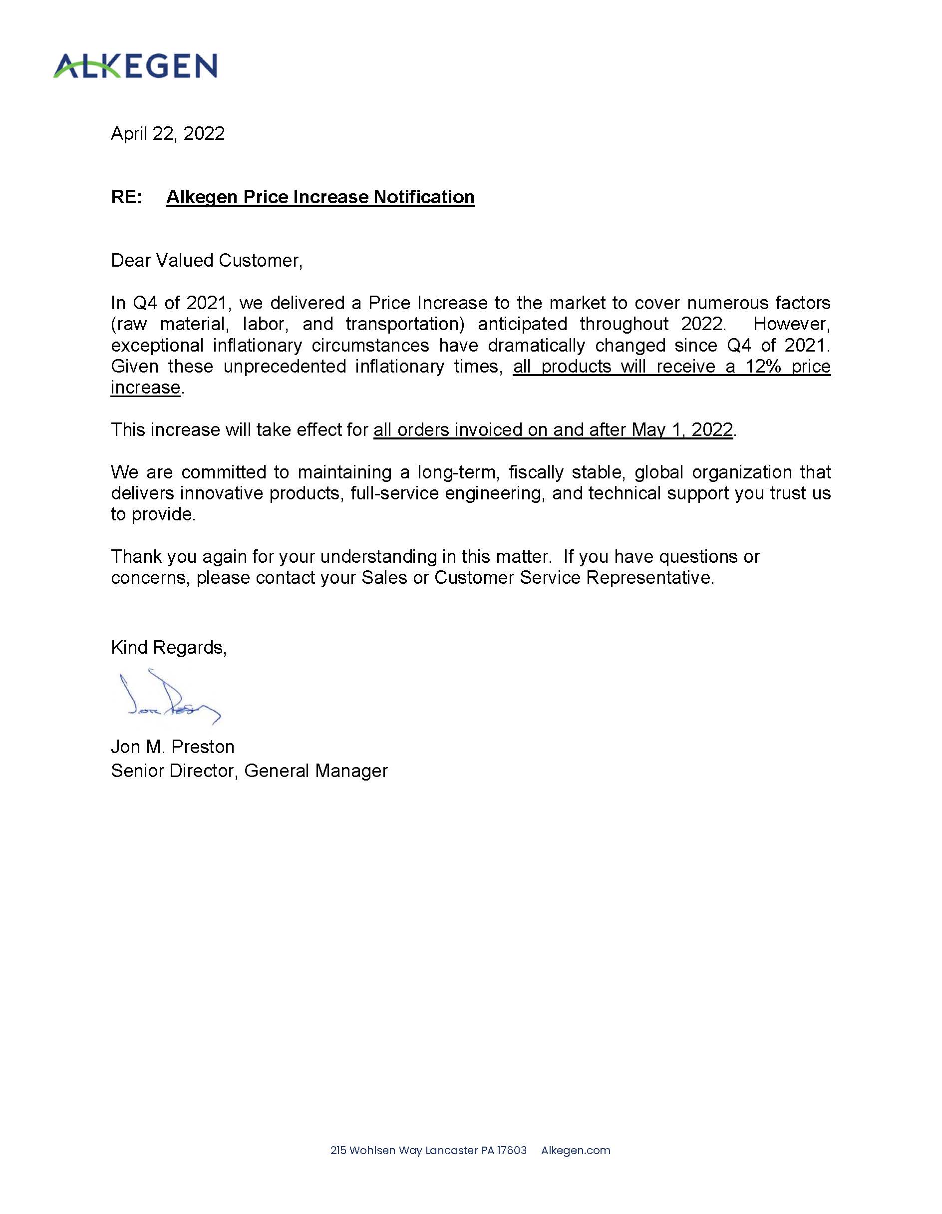 美國(guó)InterFace所有材料漲價(jià)12% 的緊急通知